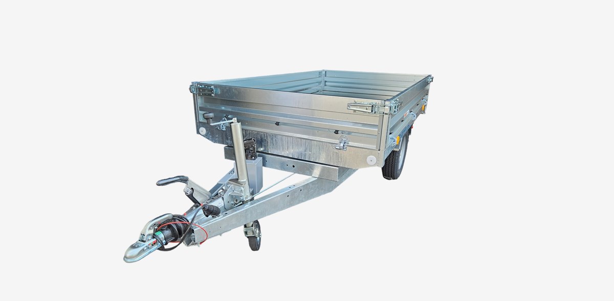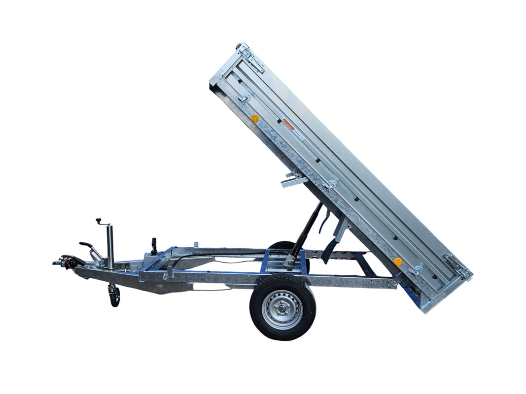 Hydraulisk Tippvagn med bra lastyta och stålbotten.